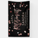 Modern Happy Retirement Custom Name Banner with festive printed rose gold confetti Illustrations. Personalise with your name and another 1 or 2 lines of custom text as well as the option to change the background to another colour in the design tool under "customise further". This is the rose gold on black version.