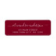 Modern and Elegant Burgundy Script Typography Wedding Invitation Return Address Label which is great for a Save the Date, RSVP, Bridal Shower, Baby Shower, Birthday Party, or Christmas Holiday Card or Invitation. The text of this hand lettered modern script typography label can be updated and customised with your name and address. These Baby Shower, Bridal Shower, Bachelorette Party by Mail, Wedding or Delay the Date Return Address Lables are perfect for that event or party that needs to moved to a new date.