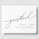 Modern and elegant minimalist guest book features script "guestbook" and classic typography.