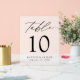 Trendy, minimalist wedding table number cards featuring "Table" displayed in a black calligraphy script with a faux frosted acrylic background. To order the acrylic table card sign: add your name, wedding date, and table number. Add each number to your cart individually and checkout when you're finished.