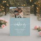 Modern elegant sea blue wedding script photos invitation