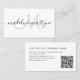 This business card features a modern script typography monogram on the front and QR code on the back. Personalise it with your own text and QR code.