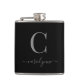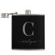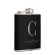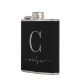 Modern Elegant Silver Black Monogram Script Hip Flask