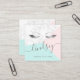 Modern elegant silver marble pink mint lashes square business card