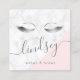 Modern elegant silver white marble pink lashes square business card