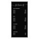 Customise this modern elegant black menu card to easily create a price list for your services. Perfect for hair salons, nail salons, lash extension and makeup artist services, beauty bars, spas, aesthetician services and more etc. Use the customise tool to change font and background colours and remove/change social media icons. Contact us if you need help: yourstyle@pgco-designs.com.