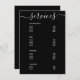 Customise this modern elegant black menu card to easily create a price list for your services. Perfect for hair salons, nail salons, lash extension and makeup artist services, beauty bars, spas, aesthetician services and more etc. Contact us if you need help: yourstyle@pgco-designs.com.