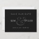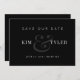 Trendy typography minimalist ampersand black and white wedding save the date dark monochromatic card template.
