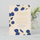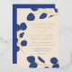 Beautiful elegant wedding invitation with blue leaves with gold foil details on navy blue and classic blue backgrounds, a simple modern elegant eucalyptus leaf sprig wedding invitation design. Minimalist greenery line art drawing, simplistic and stylish and perfect for a botanical diy printable download or modern printed wedding invitation. Easy to use templates with white and gold foil elegant typography script on a navy blue background. Unique artist created custom wedding invitation. A minimalistic foliage burgundy and navy blue wedding invite design. Original artwork by artist Catherine Sweetman