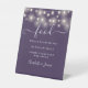 Modern Elegant String Lights Purple Food Menu Pedestal Sign