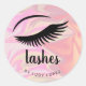Gorgeous lashes round sticker design featuring colourful faux holographic texture, lashes and elegant calligraphy font.