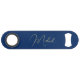 Create your own custom, personalised, modern elegant faux gold calligraphy typography script font monogrammed on navy blue background, trendy chic stylish cool professional extra durable stainless steel speed bottle opener bar key featuring a length and design to open bottles with speed and ease. Simply type in your name / family name, to customise. Makes a great gift for birthday, christmas, holidays, wedding, graduation, fathers day, friendship day, special tastings, milestone birthdays, and more, for your loved ones, mum, dad, girlfriend, boyfriend, husband, wife, couples, newlyweds, beer lovers, bartenders, men, women, him, her, friends and family.
