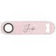 Create your own custom, personalised, modern elegant black calligraphy typography script font monogrammed on light pastel pink background, trendy chic stylish cool professional extra durable stainless steel speed bottle opener bar key featuring a length and design to open bottles with speed and ease. Simply type in your name / family name, to customise. Makes a great gift for birthday, christmas, holidays, wedding, graduation, fathers day, friendship day, special tastings, milestone birthdays, and more, for your loved ones, mum, dad, girlfriend, boyfriend, husband, wife, couples, newlyweds, beer lovers, bartenders, men, women, him, her, friends and family.
