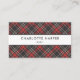 A chic personalised black red and white plaid tartan square-patterned business card featuring an elegant charcoal grey border with a white nameplate. The nameplate can be used for your company or name details. The reverse has a crisp white background with contact details set in a slate grey text. Designed by Thisisnotme©