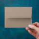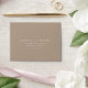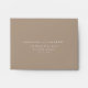 Elegant wedding RSVP envelopes featuring your names separated by "and" displayed in a white calligraphy script on a taupe background. Personalise the modern wedding RSVP envelopes with your return address below.