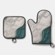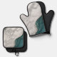 Modern Elegant Teal Grey Marble Oven Mitt & Pot Holder Set