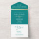 Keep it simple and stunning with this minimalist all-in-one wedding invitation, designed in crisp white and elegant teal. Featuring romantic gold rope heart detailing and modern handwritten calligraphy, this design balances elegance and warmth. Personalise the back with a custom photo of the couple, along with your wedding details and RSVP. A chic and convenient choice for your special day.
