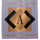 Trendy luxury unique exclusive monogrammed shower curtain featuring faux gold copper metallic glitter and black geometric design squares and lines over a stylish classy lilac background. + Personalise it with your family name or text and a big bold monogram name initial