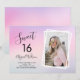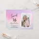 Pretty and girly Sweet 16 birthday party invitation with pastel purple background and elegant calligraphy font. Upload your favourite photo.