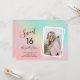 Pretty and girly Sweet 16 birthday party invitation with colourful background and elegant calligraphy font. Upload your favourite photo.