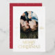 Modern elegant trendy typography Merry Christmas red, black and white real foil gold, silver and rose gold holiday 1 photo card design.