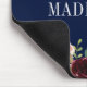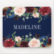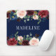 Modern Elegant Watercolor Mixed Floral Mouse Pad includes burgundy roses, pink roses, blue flowers, red flowers and beautiful botanical greenery. Navy Blue Background with your name in a fashionable script.