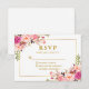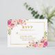 Modern Elegant Watercolor Floral Pink Blush Gold Wedding RSVP Card - Gold Frame with pink roses and greenery