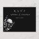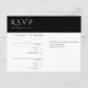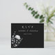 These response card postcards bring a modern touch to your wedding plans. Featuring meal choices and a chic Modern Elegant design in black, and white adorned with a white flower, make your RSVP a statement of love and style!