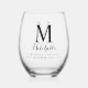 Modern Elegant Wedding Custom Monogram Name Date Stemless Wine Glass