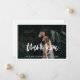 Express your gratitude and thank your guests for their presence and beautiful gifts with this customisable photo card with a modern typography. Just add your favourite wedding picture, change the colours and write your own thank you message.