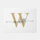Modern Elegant White and Gold Monogram Name Script Doormat