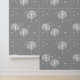 Modern Elegant White Dandelions on Dark Grey Wallpaper