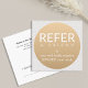 Simple square white FAUX gold customisable referral card template for beauty related professionals. Simple clean design, fully customisable.