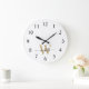 Girly Stylish Modern Elegant White and Gold Monogram Initial Name Script Custom Personalised Large Clock. This design featuring a first name in a pretty hand lettered swash tail font calligraphy (or typography) with monogram initial in gold and black colour on white colour background. Easy to customise it. Great stylish feminine housewarming gift, also for birthday, wedding, sweet 16 birthday party, bridal shower and baby shower, mother’s day, graduation and It’s for the girl who loves unique minimal things.