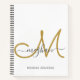 Modern, trendy girly white and gold custom personalised monogrammed spiral notebook. This simple elegant design features a cursive hand lettering first name with swashes in grey and a huge hand-written monogram script in gold colour on white background. This feminine, pretty notebook is a perfect gift idea for business, professional, school, birthday party, wedding and any party or occasion for someone that like girly and modern styles. If you need help or matching item please contact to designer.