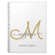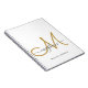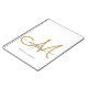Modern, trendy girly white and gold custom personalised monogrammed spiral notebook. This simple elegant design features a cursive hand lettering name with swashes in grey and a huge hand-writing monogram script in gold on white background. This feminine, pretty notebook is a perfect gift idea for business, professional, school, birthday party, wedding and any party or occasion for someone that like girly and modern styles. If you need help or matching item please contact to designer.