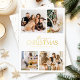 Celebrate the holiday season with this elegant, modern white and gold Merry Christmas photo card featuring elegant gold foil typography together with your family name and year, plus a customisable photo collage of four pictures to the front, plus one to the reverse. A personal greeting is also on the reverse for you to add a special seasonal note. The perfect choice for modern families who want tastefully styled Christmas cards, this elegant design showcases your favourite photos, whilst the eye-catching gold foil metallic beautifully complements the white background. Add the final touch with your own photos to create a perfectly balanced, modern and charming aesthetic to share your holiday joy with friends and family!