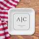 Modern Elegant White Monogram Wedding Square Paper Plate