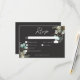 Our charcoal black wedding response card with dinner choices with a striking white peony, soft yellow centre, lush greenery, and delicate cotton bolls is a modern masterpiece. The crisp white text adds a touch of elegance, while the dark background creates a dramatic backdrop for your special day. This design is a breathtaking blend of modern elegance and timeless romance. Created by Simply Farmhouse Press.