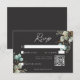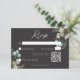 Modern Elegant White Peonies Black Wedding QR Code RSVP Card