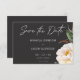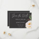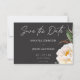 Modern Elegant White Peonies on Black Wedding Save The Date