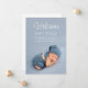 Modern 2 photo birth announcement card with white text. This stylish baby announcement features a dusty blue full-frame baby photo, elegant "Welcome" lettering, baby's name and birth details in a sans serif font. Backside with custom photo and birth announcement text in grey. Use the easy-to-customise design template and create a unique magical moment for your family and friends. © y.BEE PAPERIE #ZazzleMade #birthannouncement #birthannouncementcard #babyannouncement