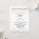 Modern and elegant wedding invitation in white with silver glitter and a cursive script font.