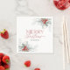 Modern Christmas party napkins featuring elegant winter greenery and berries on a white background. The design showcases stylish text typography - Merry Christmas.