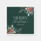 Modern Christmas party napkins featuring elegant winter greenery and berries on a dark green background. The design is showcases stylish text typography.