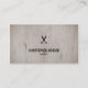 Elegant customisable business card template with wooden background and black scissor pattern. Elegant and simple design, perfect for beauty salon, hairdresser, barber, hairstylist.