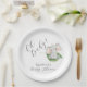 Modern Elephant Greenery Oh Baby Shower Paper Plate