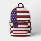 This design of the American flag presents some unique traits. The colours are vivid, with a striking deep blue for the stars' background and a rich red for the stripes. The colours are vivid, with a striking deep blue for the stars' background and a rich red for the stripes. The stars and stripes appear to be embossed or raised, creating a 3D effect. The colours have a gradient effect, adding depth and dimension to the design. The overall style gives a modern and stylised interpretation of the traditional American flag.