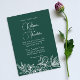 Elevate your wedding announcement with this modern and elegant invitation. Featuring a stunning floral design on an emerald background, with a mix of classic script and modern typography, this invitation is fully customisable to fit your needs. Whether you want to add your own personal touch or adjust the design to match your wedding theme, this invitation is the perfect way to impress your guests and set the tone for your big day.