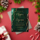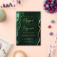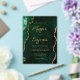 This elegant acrylic wedding invitation features a background image of emerald green watercolor agate trimmed with faux gold glitter. The customisable text combines gold-coloured modern handwriting, copperplate and italic fonts.
